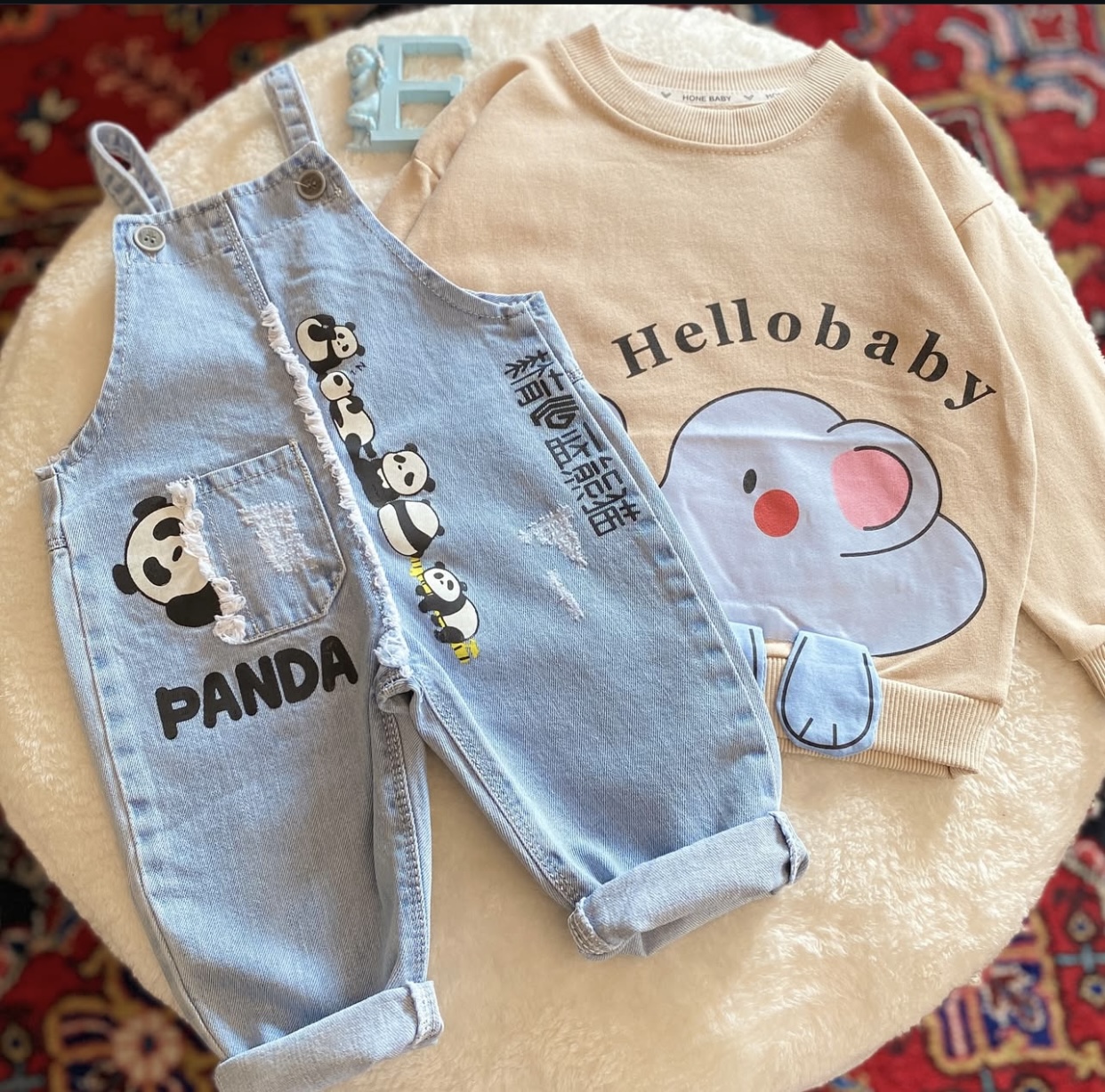 بیلر جین بچگانه با طرح پاندا - استایل بانمک و راحت برای کوچولوی شما